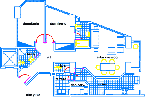 2 Dormitorios; 2 baños; Sala de estar; Comedor; Cocina Dormitorio de servicio; Baño de servicio; Area de lavandería privada